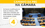 Caso não haja modificações, o texto segue para promulgação e é incorporado à Constituição. Para garantir esse cenário, o próprio presidente eleito tomou frente nas articulações dentro da Câmara. "Farei quantas conversas forem necessárias para que a PEC possa ser aprovada na Câmara da mesma forma que foi aprovada de forma extraordinária no Senado, por 64 votos", disse Lula em entrevista coletiva na última sexta (9).